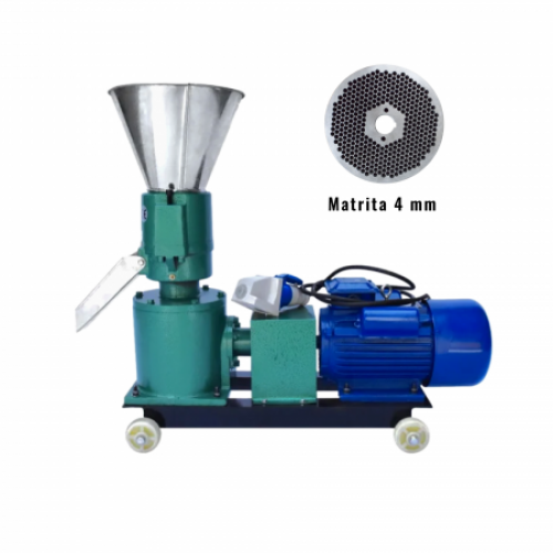 Acest utilaj vine echipat cu 1 matrita, una cu gauri de 4 mm (dimensiune se utilizeaza pentru animale precum pasari, iepuri etc.).